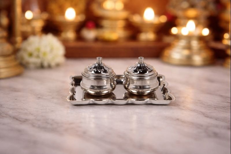 Ilai Kunguma Chimil is a traditional pooja accessory designed in a beautiful leaf shape, perfect for holding kungumam, chandanam, or turmeric. Made with a smooth finish and elegant design, it adds a divine and aesthetic touch to your pooja room.